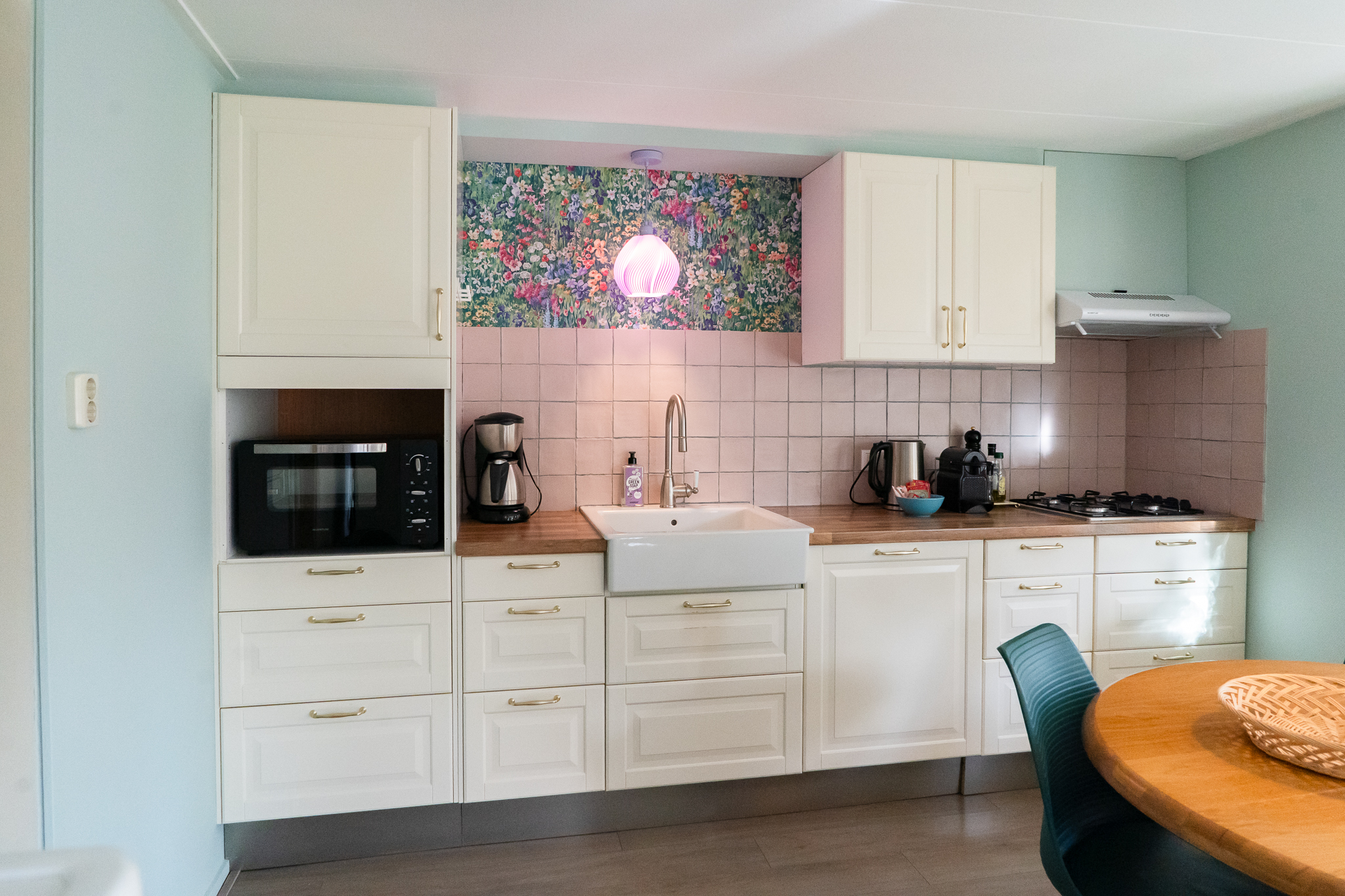 Dit ruime vakantiehuisje beschikt over 2 slaapkamers met twee tweepersoonsbedden. Ideaal dus als je lekker met een vriendin een weekendje weg wilt, maar sowieso ook prettig als je graag gebruik maakt van aparte slaapkamers. Er is nog een derde kamertje waar een werkplek is gecreëerd, zodat je ook afgezonderd nog wat kunt werken of een videocall kunt doen. Maar je kunt er ook heerlijk een puzzel maken aan de grote tafel. Er is een royaal keukenblok met vaatwasser. De houtkachel biedt een gezellige, knusse sfeer houdt je ‘s avonds warm. Samen genieten bij de open haard is de perfecte gelegenheid om bij te komen en te ontspannen na een mooie wandeling of fietstocht op de Veluwe. Of kom even lekker tot rust in de infrarood sauna!