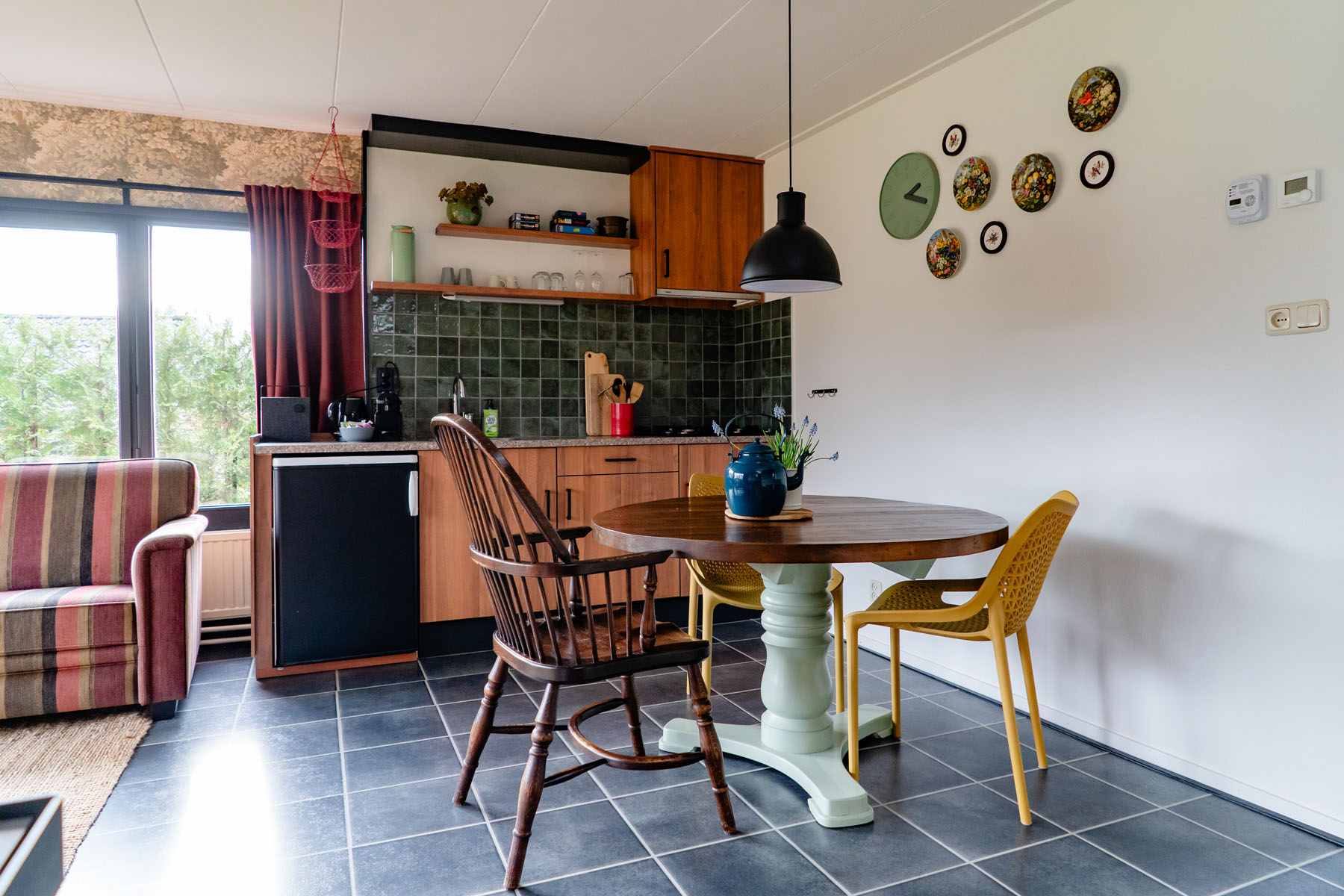 Onder De Kastanje is een knus vakantiehuisje voor 2 personen. Dit gezellige, kleurrijke huisje met haard staat op ons kampeerveld, onder een geweldig mooie tamme kastanje. Er zijn twee ruime slaapkamers met tweepersoonsbedden en linnenkasten. Dit maakt het knusse vakantiehuisje de perfecte plek voor 2 personen, zoals vriendinnen of moeder & dochter. Er zijn een vaatwasser en oven aanwezig en er is WiFi in het huisje.